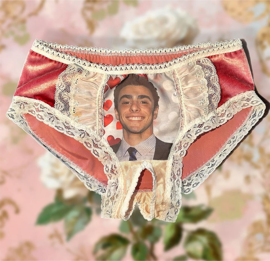 Stretch pink velvet base with doll lace accent & cotton front panel- Crotchless